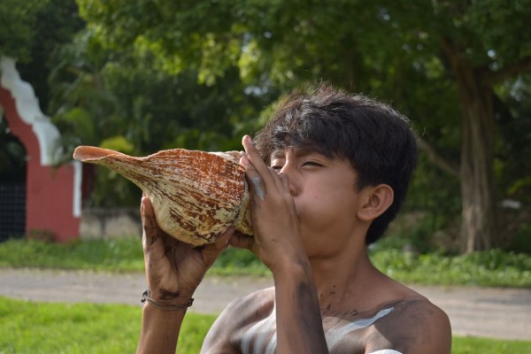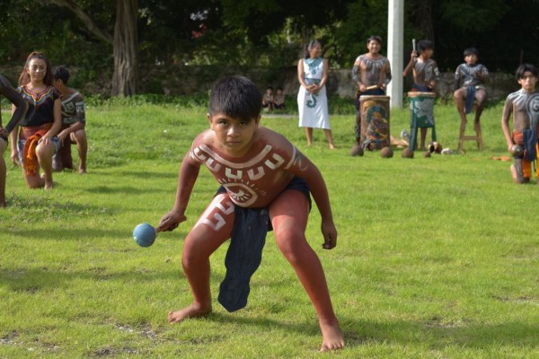 Yucatán, 27 de agosto de 2021.- La tarde está por caer, el sol baña con sus últimos rayos a niños y jóvenes en la comisaría San Pedro Chimay, quienes con sobrado entusiasmo se apoyan unos a otros para pintarse el rostro y ajustarse el vestuario, pues sostendrán un encuentro de juego de pelota maya, pok ta pok, con cuya práctica demuestran amor por sus raíces, a la vez de ejercitarse.